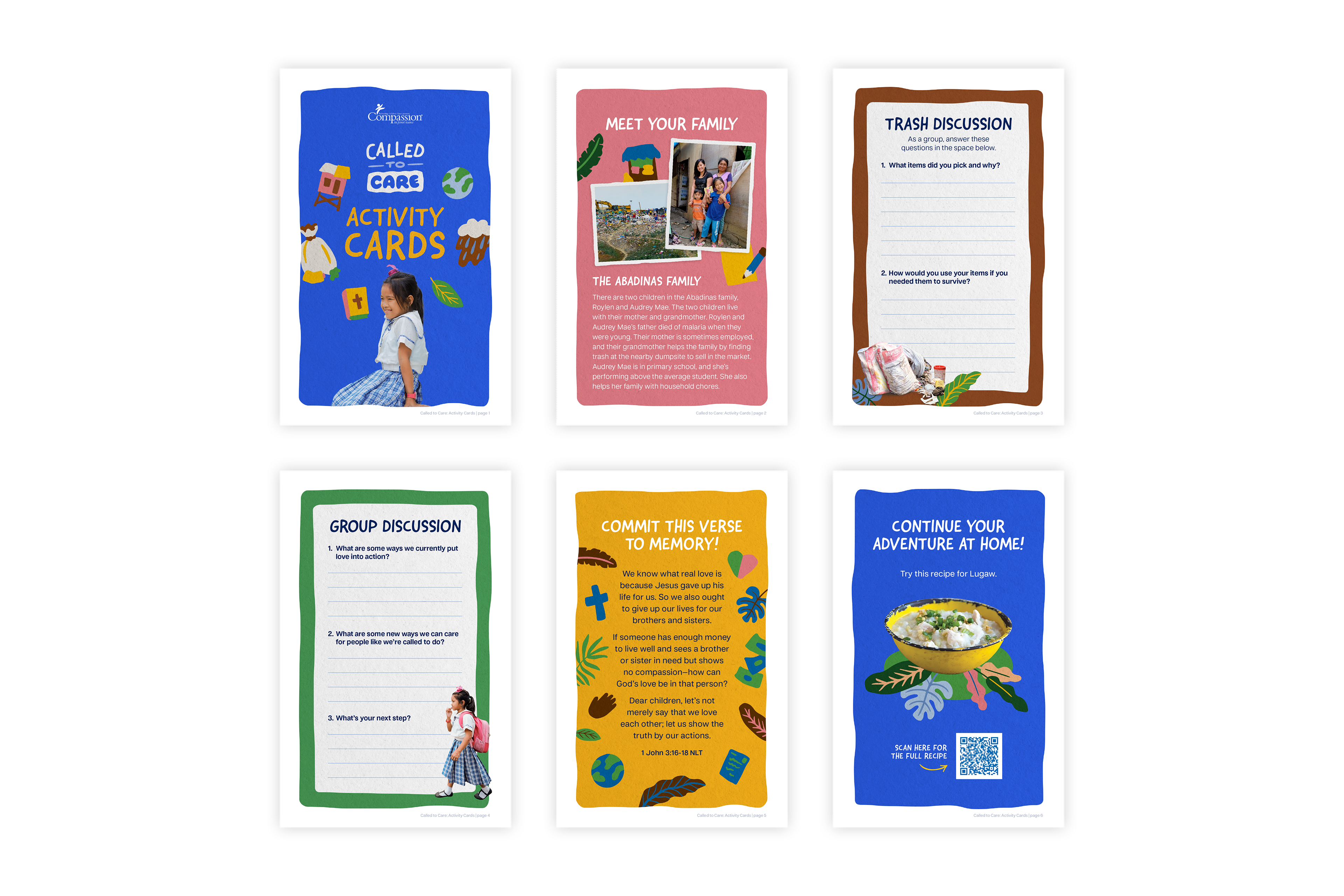 Called to Care is a 90-minute event experience that immerses adults and kids into a different community and culture through multi-sensory experiences. I was tasked to lead the development of rebranding and updating this experience with new visual assets and creating a cohesive experience across all touch-points.